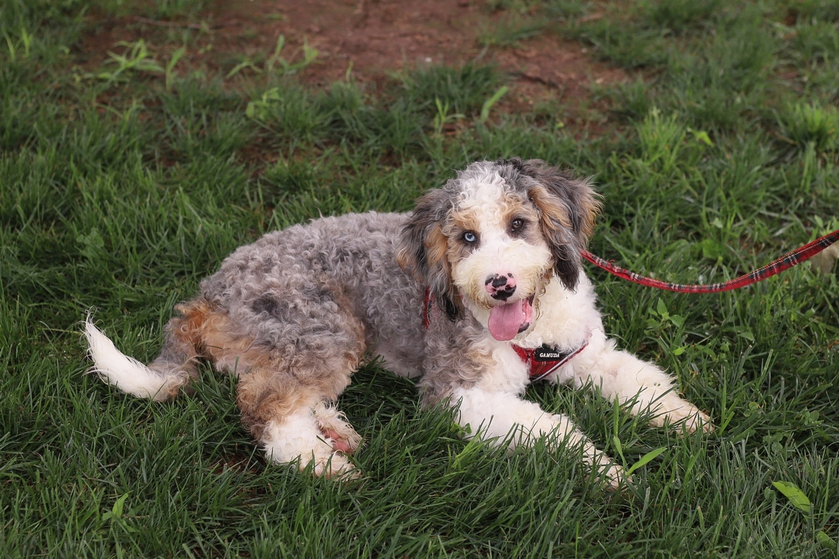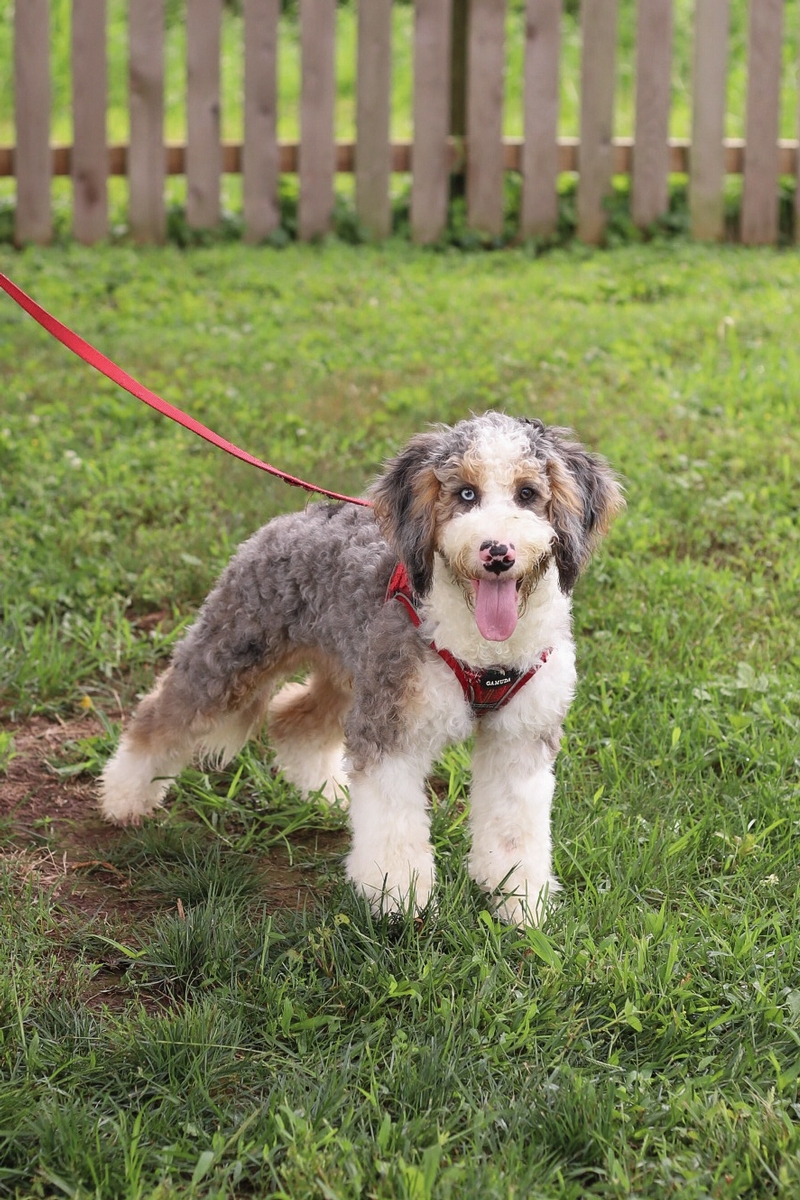 Lenny just loves people! He is very energetic and loves to play. He is well started with leash training, and is always ready for his walk! We expect him to grow to around 40 pounds.