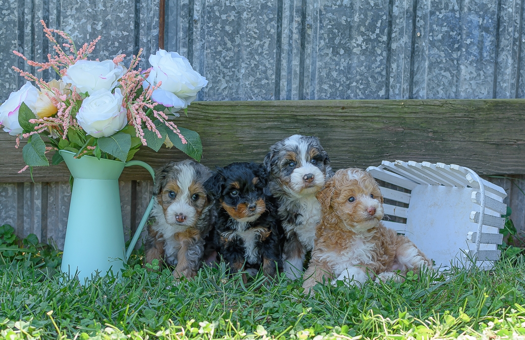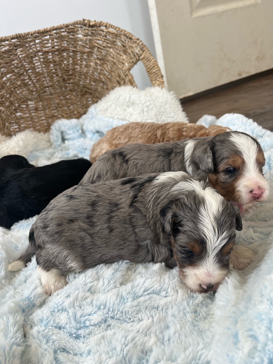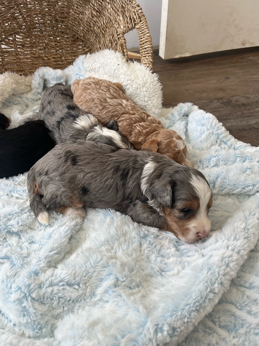 Addy's litter of micro mini bernedoodles will be pretty small, with dad being 19 pounds and mom being 15 pounds. We are once again expecting a variety of colors, and lots of personality! Contact us to reserve your pick now!