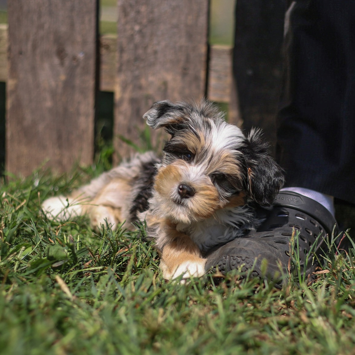 Say hello to Rebel! He is a happy little Mini Bernedoodle! He is friendly and well socialized with kids. Call now for more info!