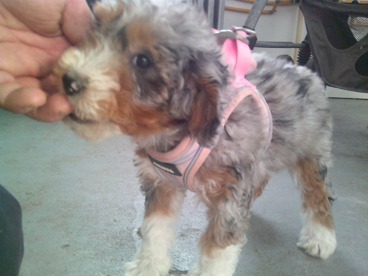 Remi will grow to about 18-22 pounds. She has the correct hair coat, and will likely be fairly curly. If you are looking for a small bernedoodle with brilliant color, don't miss this litter! See these videos of Remi.