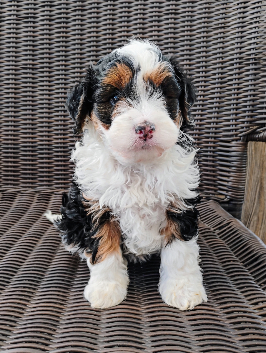 Say hello Talia, she is an adorable black tri mini Bernedoodle. She is friendly and well socialized. She is looking for her forever family!
