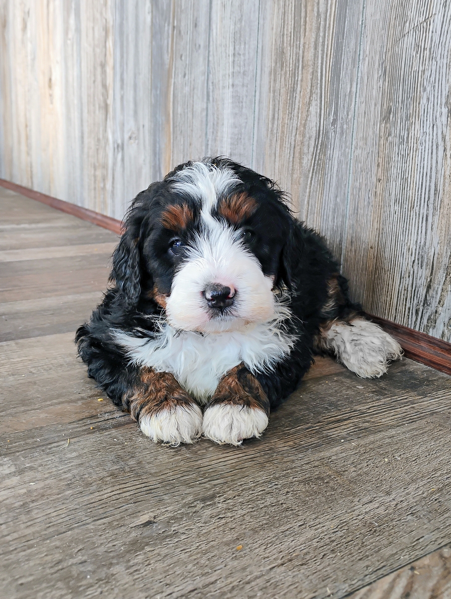 Based off of his parents sizes, he will be around 30lbs full grown!