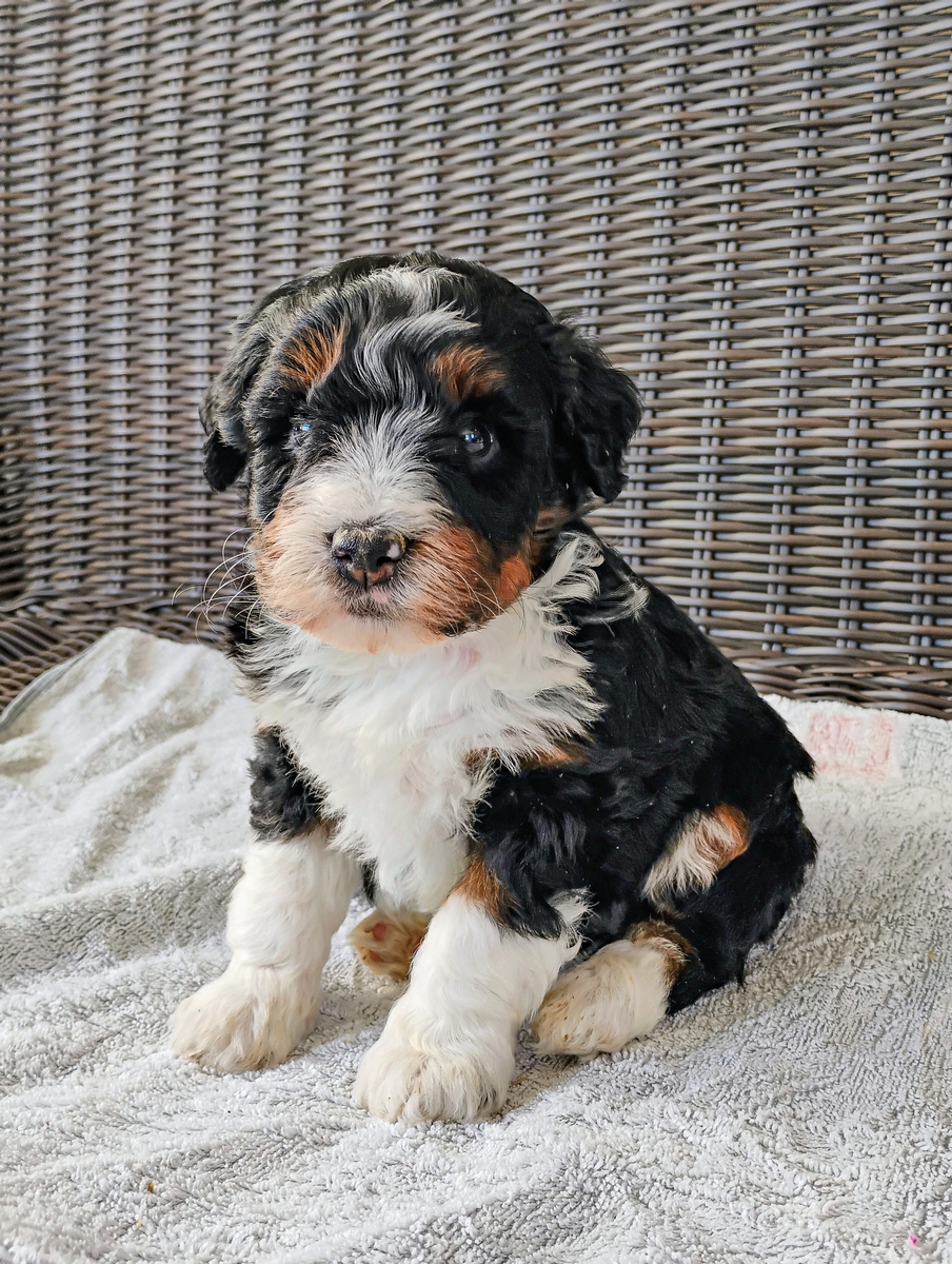 Meet Zeke! This Mini Bernedoodle puppy is looking for his forever home!